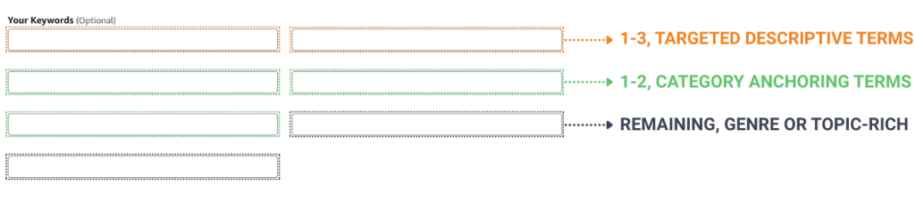 Keyword boxes: These are the seven Kindle keyword boxes where you get to choose the keywords you want your book to show up for.