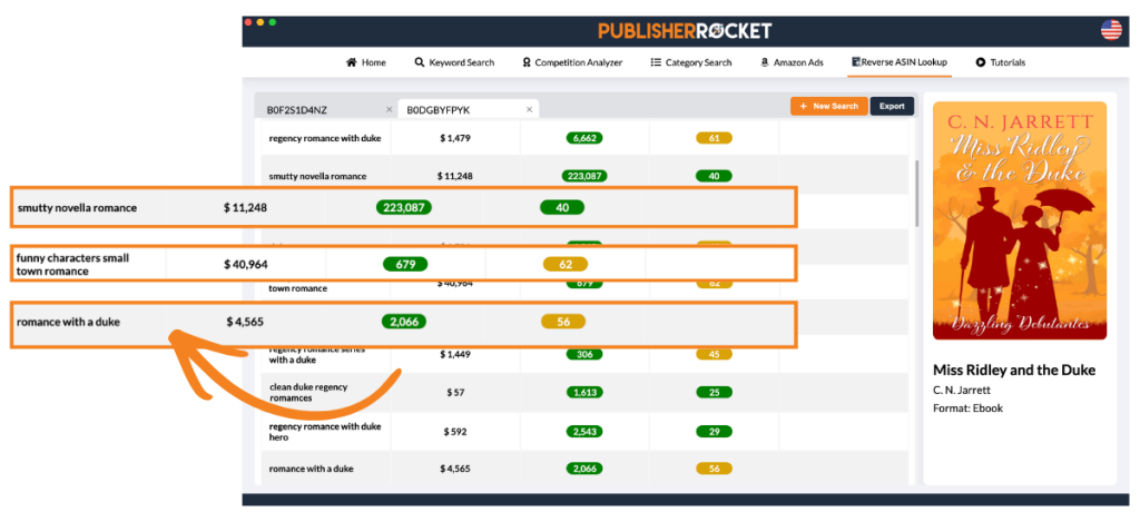 Instead of having to search around, or break out Excel sheets to calculate sales like we did in the manual process above, you can just see what keywords other similar books are benefiting from. This takes away all the guessing, and searching and such.