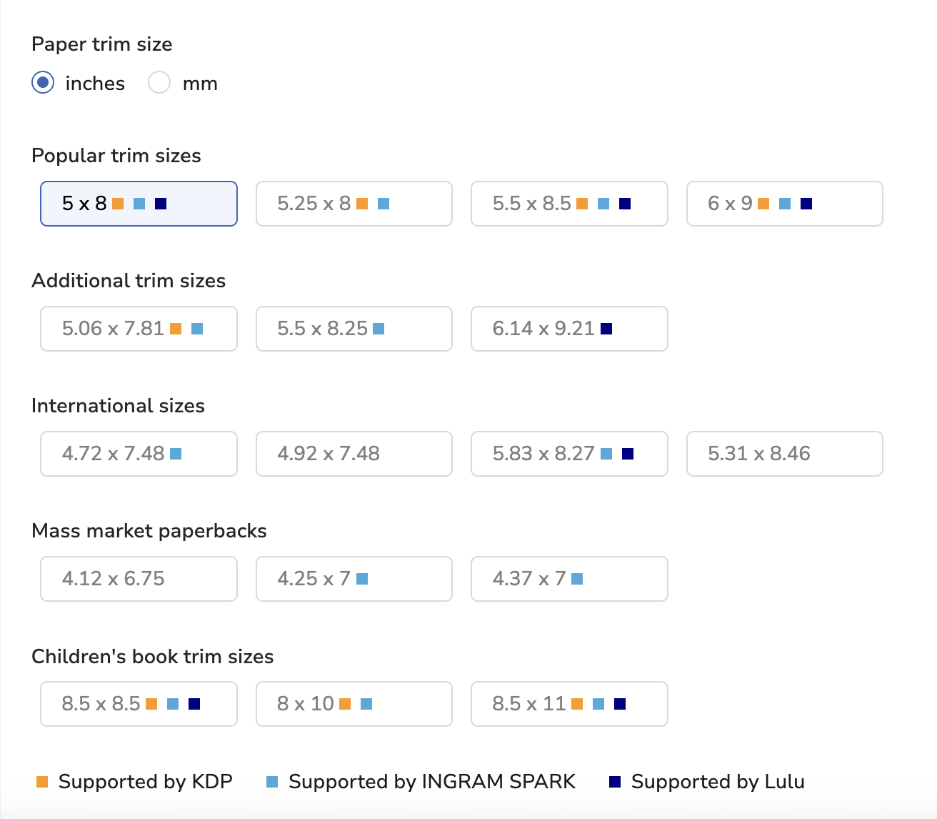 So if you published a paperback using any trim size that is not included here, such as 5×8”, then you will have to reformat your manuscript and cover to work with the new size.